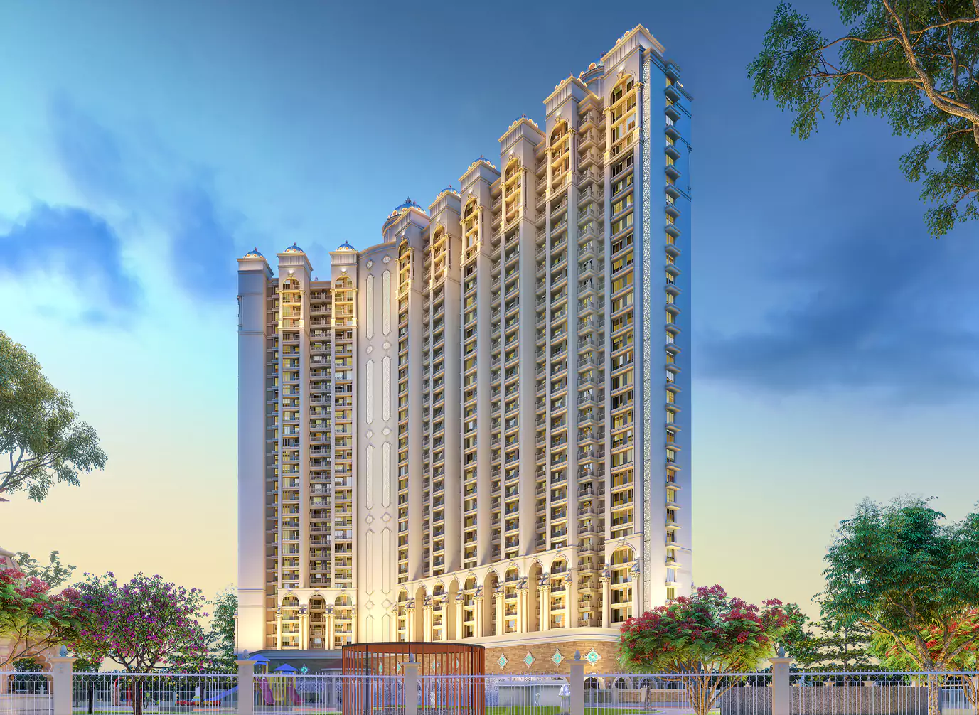 Rising gracefully with an elegant 31-storeyed tower, Nirvana Gardens Two presents meticulously planned 1, 2 & 3 BHK residences in multiple configurations. Each home is Vastu-compliant and features a 4-feet-wide private deck, allowing ample natural light, ventilation, and scenic views. The development includes E-deck and stilt-level amenities, three levels of basement parking, a grand reception lobby, and multi-level security, ensuring comfort, convenience, and complete peace of mind.